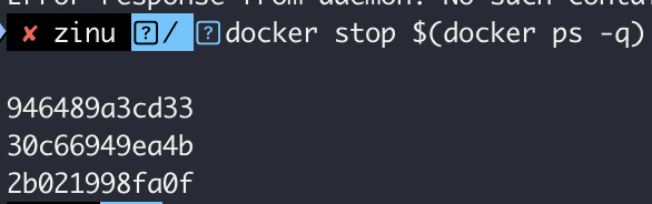 이 때 "$(docker ps -q)"명령어를 사용하여 컨테이너를 쉽게 중지할 수 있습니다.