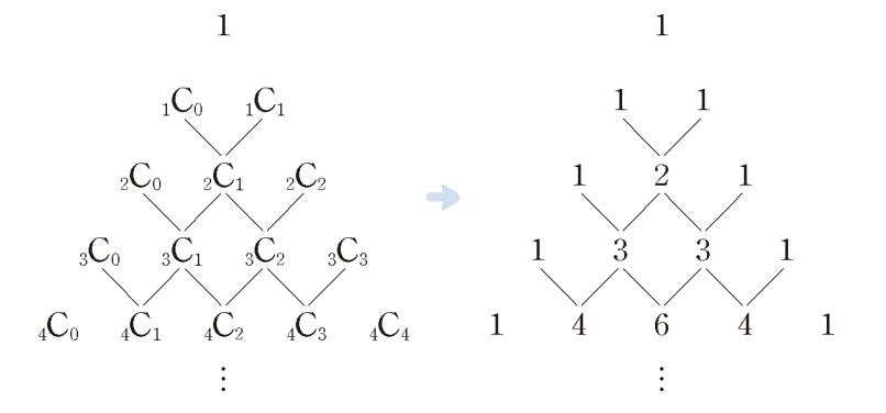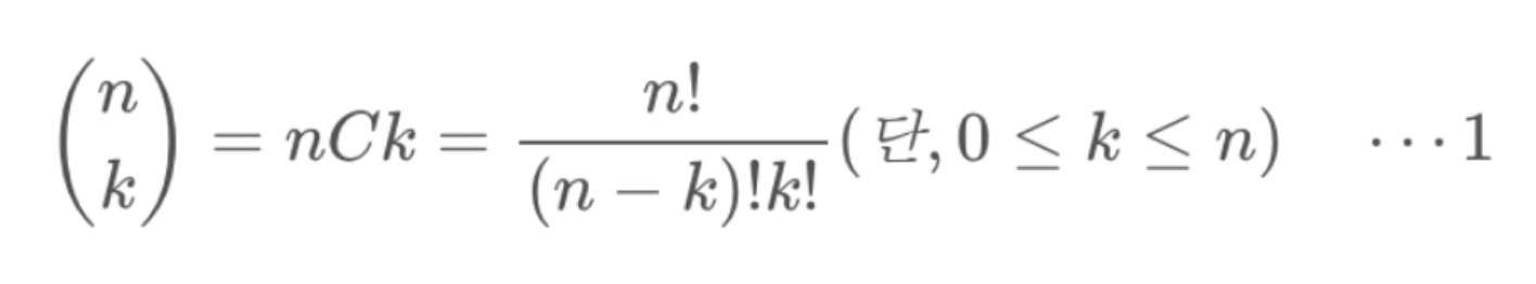 이항계수 : "n개 중에서 k개를 고르는 경우의 수"를 나타내며, 조합이라고도 불립니다.