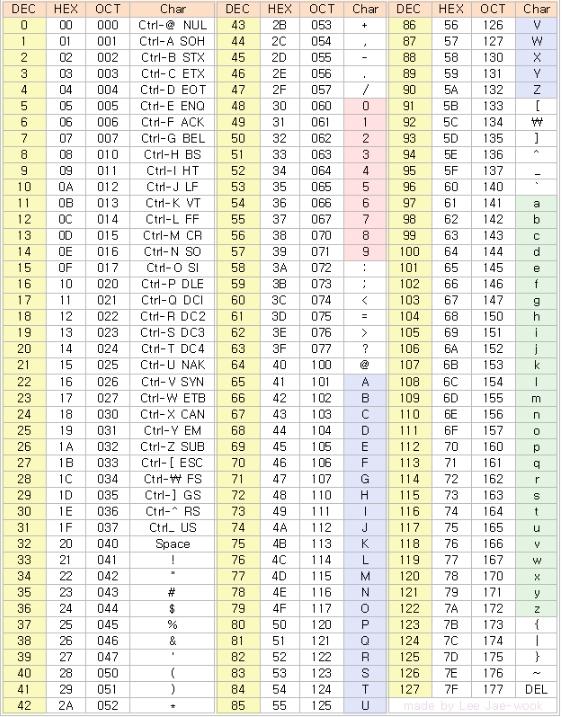 - 아스키코드