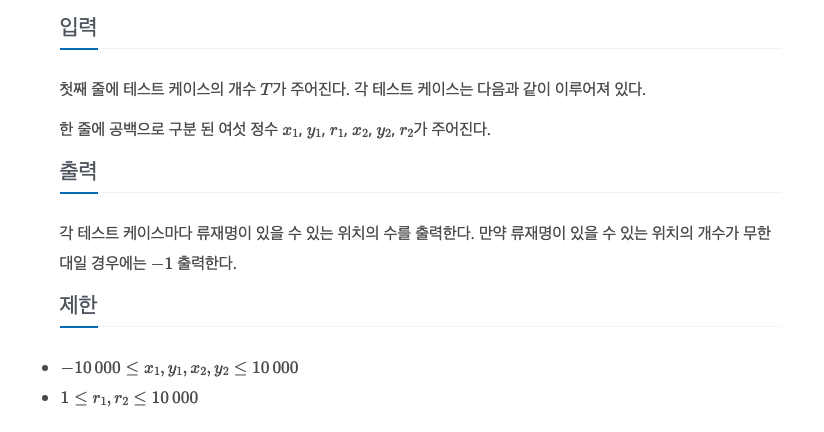 "백준 - 터렛" 문제는 두 점 사이의 거리 공식을 알고 있다면 어렵지 않게 풀 수 있는 문제입니다.