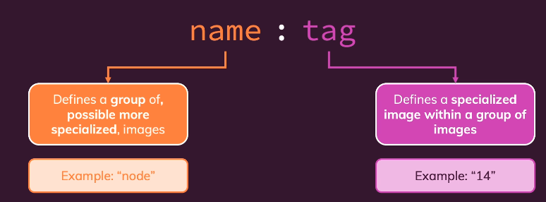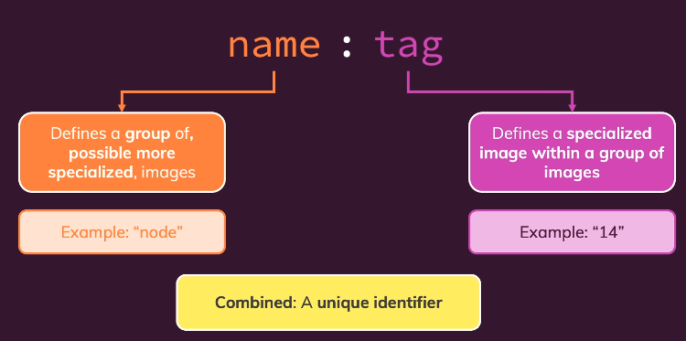이름과 태그를 결합한다면 이미지에 특정화된 버전에 대한 "고유 식별자"를 가지게 됩니다.