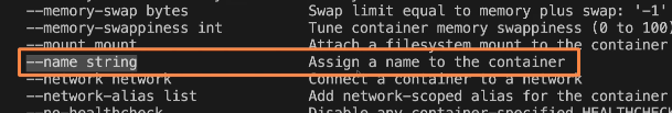 위 명령어를 입력하면 여러 리스트가 출력되는데 아래와 같은 --name 옵션을 확인할 수 있습니다.