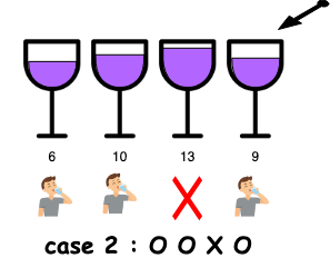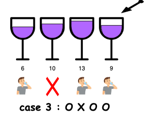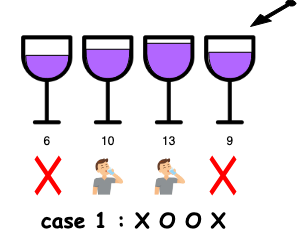 - case3: 이전 포도주와 현재 포도주를 연속으로 마시는 경우 ➡️ (O X O O)