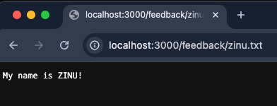 제목이 파일명으로 저장되므로, "/feedback/zinu.txt" 경로로 접속하면 저장한 내용을 확인할 수 있습니다.