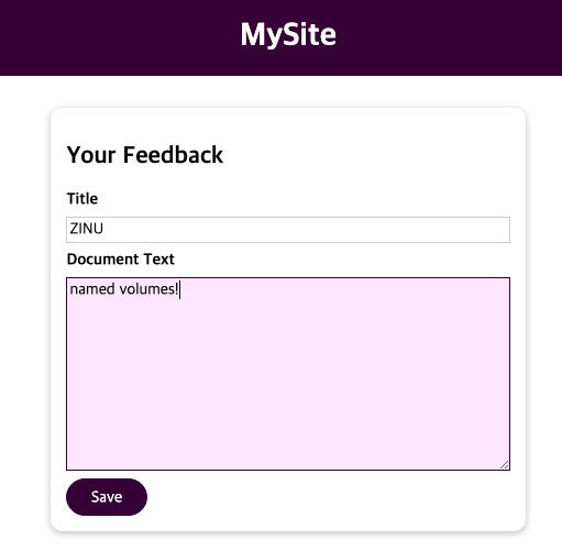 명명된 볼륨을 확인하기위해 3000번에 접속하고 위와 같이 메시지를 추가하고 저장합니다.