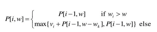 - i번째 물건까지 고려했을 때, 무게 w에서 얻을 수 있는 최대 가치