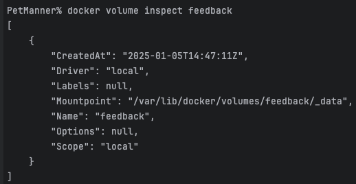 여기서 Mountpoint는 실제로 데이터가 저장되는 호스트 머신 상의 경로입니다. 즉, 도커가 생성한 볼륨이 존재하는 곳입니다.