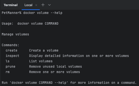 docker volume --help를 실행하면 위와 같은 명령어들을 확인할 수 있습니다.