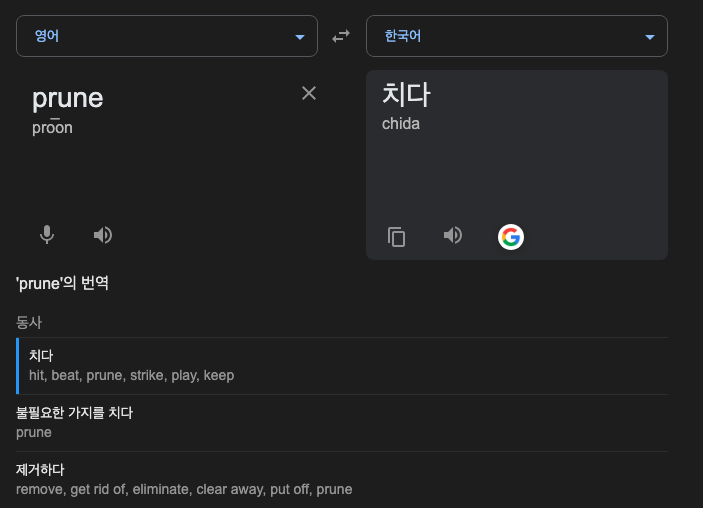 prune을 직역해보면 "치다", "제거하다"와 같이 삭제의 의미를 가지고 있습니다.