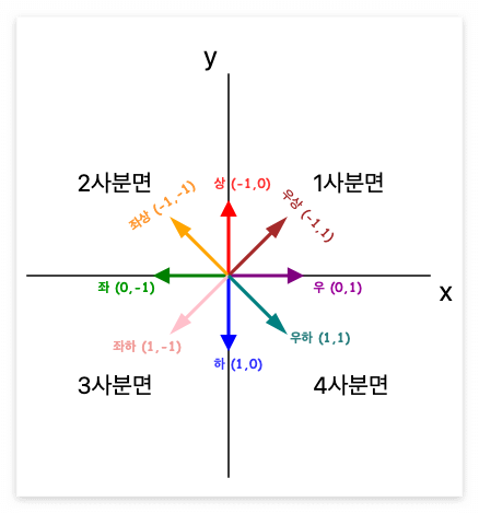 8방향 이동은 4방향에 대각선 방향을 추가한 것입니다.