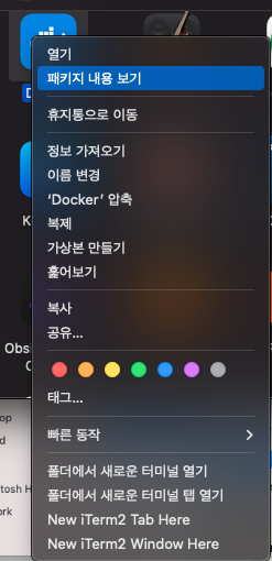1. Applications → Docker → Show Package Contents(패키지 내용 보기) 클릭