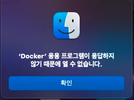 Mac에서 Docker는 Docker Desktop을 통해 관리되기 때문에 Docker Desktop을 확인한 결과 꺼져있었고, 다시 실행하는 순간 위와 같은 에러가 발생했습니다.