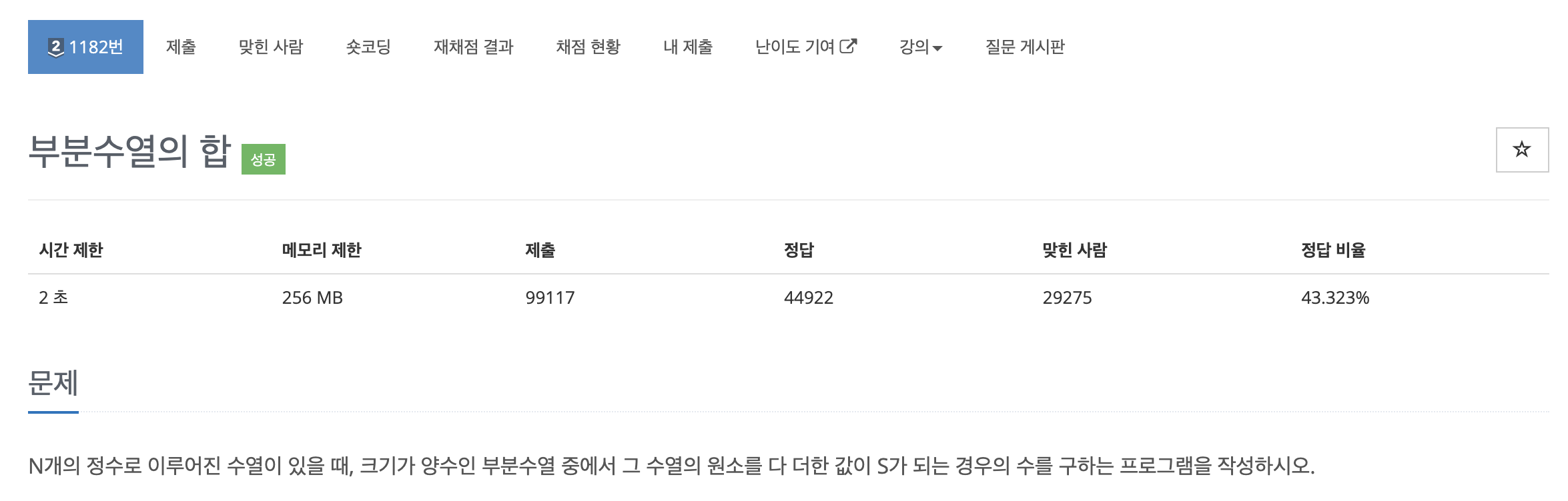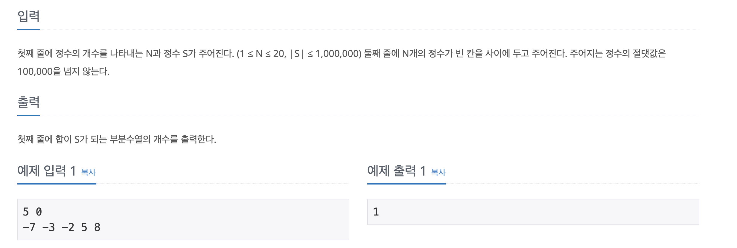 "백준 - 부분수열의 합" 문제는 정수 N개 수열과 정수S가 주어졌을 때 해당 수열의 부분 수열에서 더하여 정수 S를 만들 수 있는 경우의 수를 구하는 문제입니다.