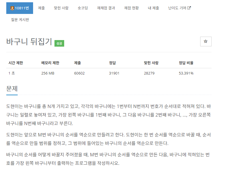 임시 배열 tmpArr을 생성합니다. 그리고 입력값 i번째 바구니부터 j번째 바구니를 tmpArr에 넣어주고, reverse() 함수를 사용해서 배열을 뒤집어줍니다.